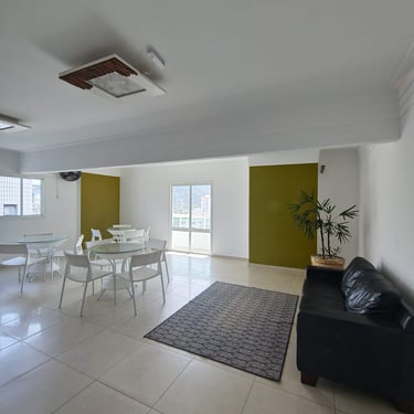 Apartamento localizado no Canto do Forte, a apenas 570 metros da praia, em condomínio com lazer completo.